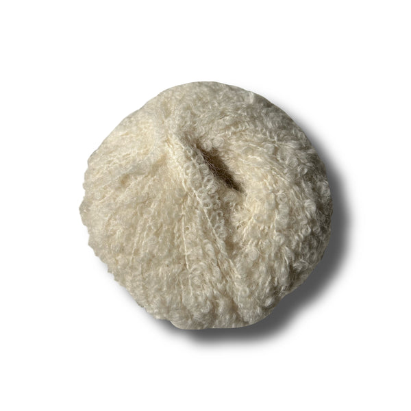 Cloche boucle bianco panna con lana d'alpaca all'uncinetto di que lo que